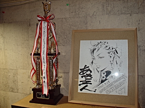 でっかいトロフィーに春麗たんの色紙(あきまん直筆)さらにAKIRAさんを引き下げご来店。
